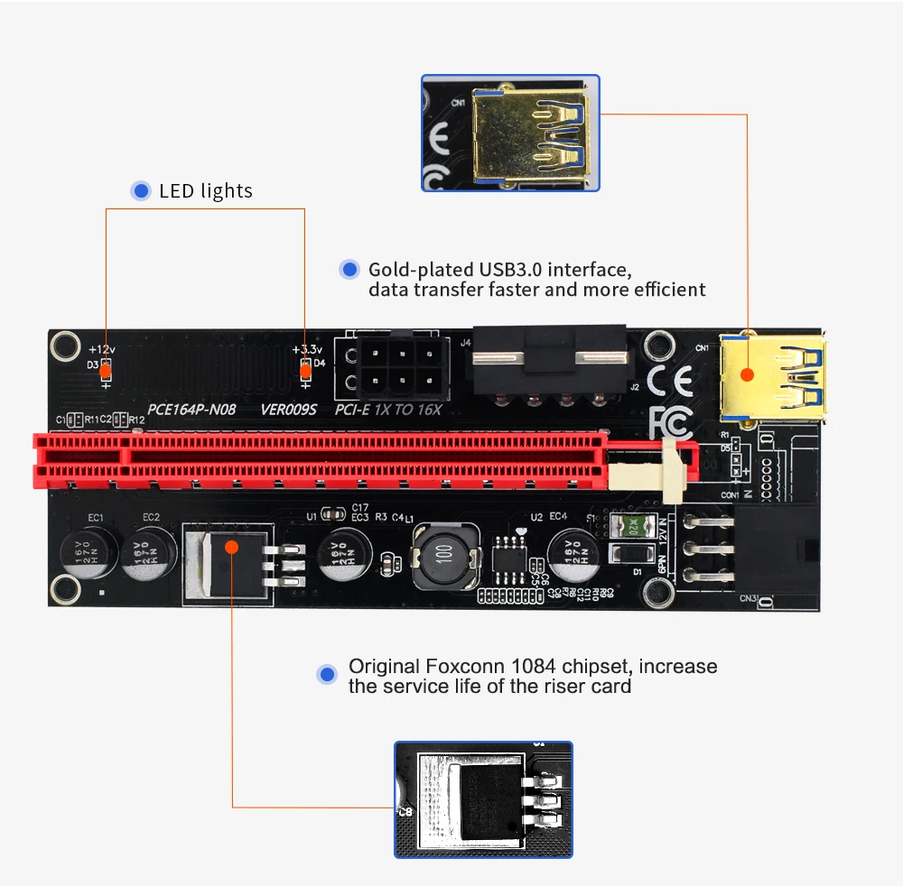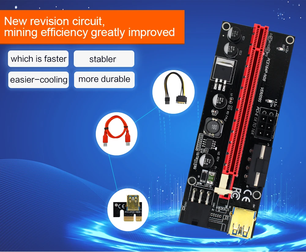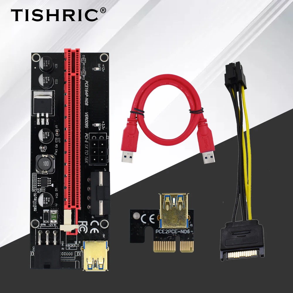 | 5PCS TISHRIC 3 IN 1 PCI-E Riser Card 009S PCIE PCI E Extender USB 3.0 SATA to 6pin Adapter Cable Bitcoin Mining Miner Riser |